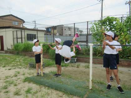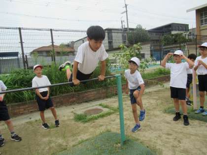 鉄棒運動でできる技に取り組んだり、