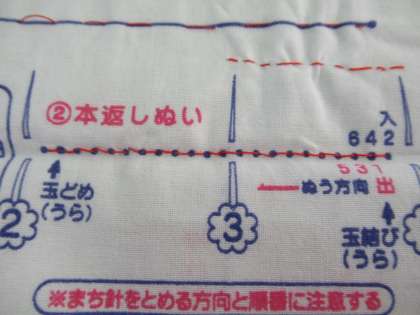 なみ縫い、返し縫い、かがり縫いの練習をしました。
