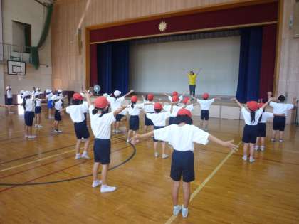 スポーツ大会に向けてダンスに取り組んでいます。やる気いっぱい、元気いっぱい頑張っています。