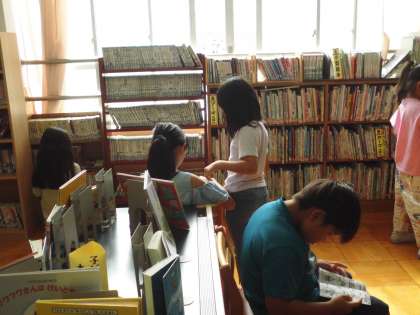 2年生の図書の学習で、読み聞かせをしてもらいました。今日は、「とんだちょうじゃどん」という紙芝居でした。昔の言葉がおもしろく、楽しんで聞いていました。その後、読みたい本を選んで借りました。読書ノートに、読んだ本をたくさん書いている人が増えてきました。