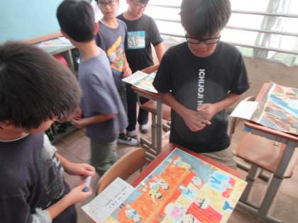 お話の絵の学習が終わり、作品の鑑賞会をしました。