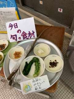 教室では、「しば漬けちりめん」は、「梅干しみたいな味がする」と酸っぱさを感じながら、「美味しい!」と食べていました。「牛肉とごぼうの煮つけ」も「なめこの味噌汁」もご飯によく合い、食が進みパクパク美味しくいただきました。