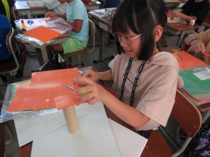 図画工作科「コロコロガーレ」では、ビー玉が転がるコース作りを行っています。スタート地点とゴール地点を決め、曲がるコースを考えたり、落とし穴やトンネルを作ったりと、子どもたちは意欲的に取り組んでいました。どんな作品が完成するのか楽しみです。
