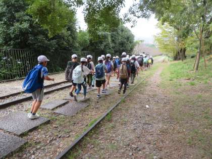 インクラインを見ると、「インクラインや!」と嬉しそうな声があがっていました。学習でインクラインについて調べているときも、興味深く調べていましたが、実際に見ると目を輝かせていた子どもたち。「こんなにすごい装置を考えるなんて、本当にすごいな。」と子どもたちは話していました。
