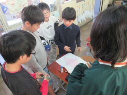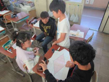 自分の考えを伝え合って考えていました。