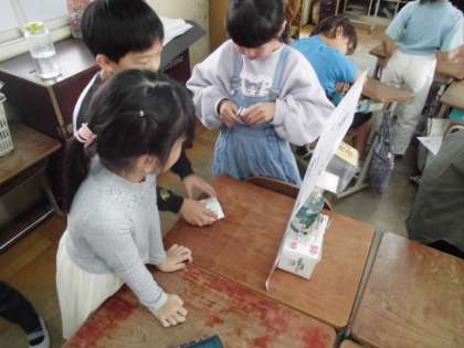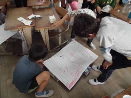 遊びながら試行錯誤を繰り返し、みんなが楽しめるおもちゃを作りました。今日は作ったおもちゃを発表してからみんなで遊びました。