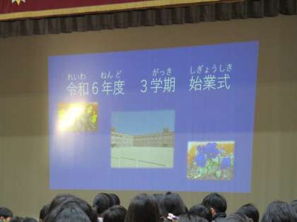 春に向けて、1年の振り返り、締めくくりの3学期となりますように、気持ちも新たな始業式となりました。