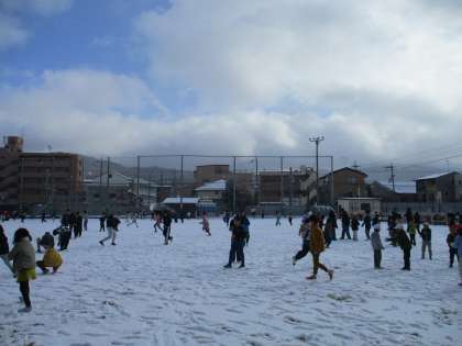 1時間目途中から激しく降ってきた雪に、中間休みは外遊びができるか、子どもたちは気になって仕方ないようでした。