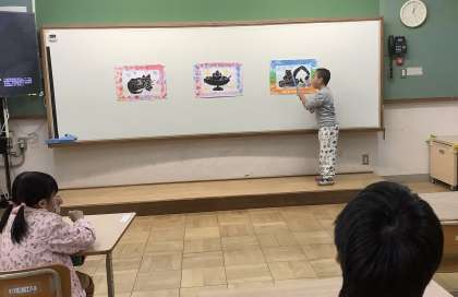 紙版画の作品の鑑賞会を行いました。工夫したところや好きなところを発表したり感想を伝えたりしました。「小さな巨匠展」と校内の図工展に出品する予定です。