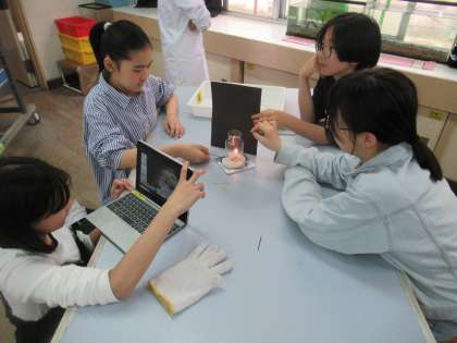 理科の「ものが燃えるしくみ」の学習で実験をしています。