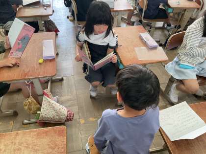 日記の書き方を学習し、最近あった出来事から日記を書きました。隣の人と読み合って日記の交流をしました。