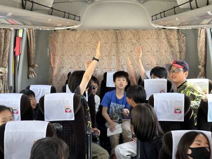 9時ごろからバス内でレクリエーションをしています。