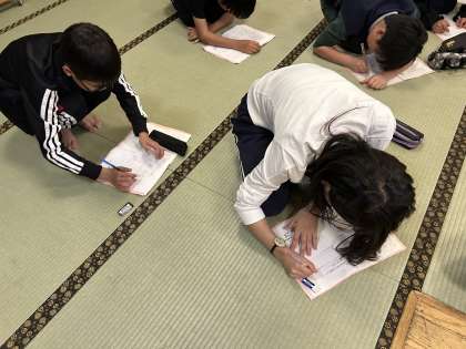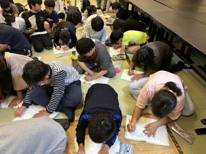 まずはそれぞれ1日の行動を見つめ直し、しおりに書き込んでいます。