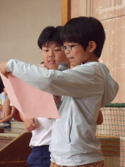 呼びかけ、合唱共に、気持ちのこもった素晴らしい発表でした。計画委員会さんの司会、進行も堂々としていて、とても立派でした。
