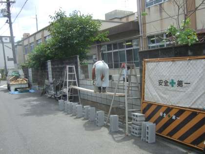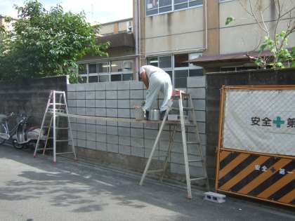 9月10日(木)には,昨日に引き続いて,ブロック塀改修工事をしていただきました。ブロック塀を積み上げ完成しました。
