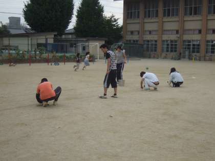 9月18日(金)放課後,運動場にラインを引きました。