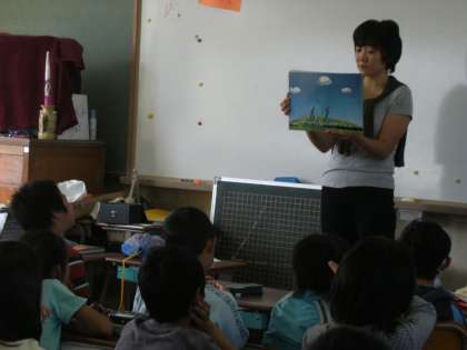 10月21日(水)に,PTA子どもと本の会主催の4年生の「よんでよんで」を朝の読書タイムにしていただきました。小川未明原作/堀尾青史脚本/桜井誠絵のかみしばい『のばら』の読み聞かせをしていただきました。