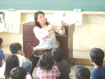 PTA子どもと本の会主催の3年生の「よんでよんで」が10月23日(金)朝にありました。たかはしひろゆき文・絵『チロヌップのきつね』のお話を聞かせていただきました。最後に,戦争のお話の本を紹介していただきました。