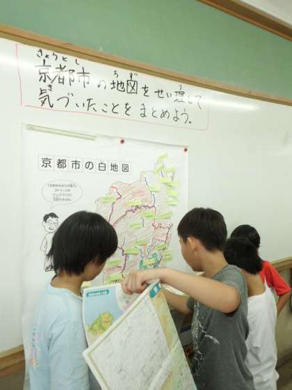 社会科の学習で京都市マップを作っています。