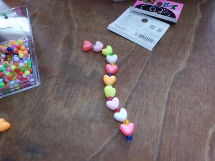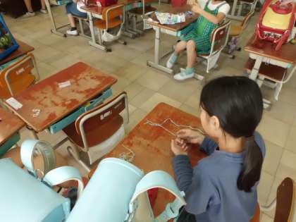 いろいろな色の刺しゅう糸を重ねてミサンガを,カラフルなビーズを使って飾りや腕輪などを制作していました。5,6年生が4年生に優しく教えてあげている姿がとても印象的でした。