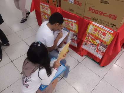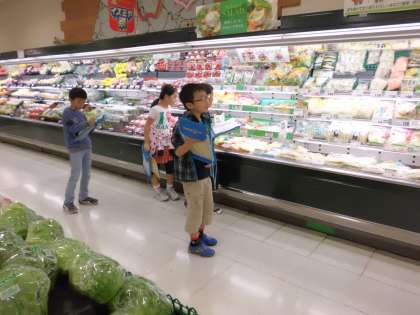 社会科「商店のはたらき」で,スーパーマーケットの工夫について調べに行きました。「なぜ,スーパーマーケットにたくさんのお客さんたちが買いに来るのかな?」「何か工夫があるのかな?」と,事前に子どもたちは,予想したり,インタビューしたいことを考えたりしました。いよいよ見学の日。子どもたちは,気づいたことをどんどん書きとめていました。商品の種類や並べ方,チラシ,サービス,お店の人の対応や様子などでたくさん気付きがあったようです。