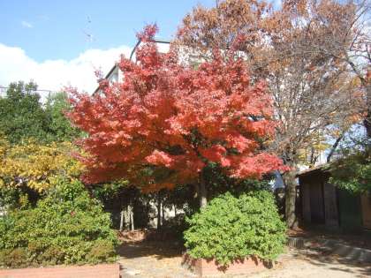 12月2日(水)校庭の北東にあるもみじがきれいに紅葉しました。。(写真左上・画像1)
