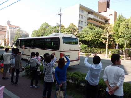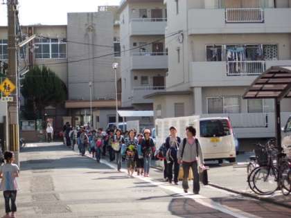 今日は出発の日。秋晴れの素晴らしい天気の中,学校で出発式を行いました。テキパキした司会のもと,出発の言葉もハキハキと大変わかりやすくしっかり話していました。