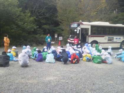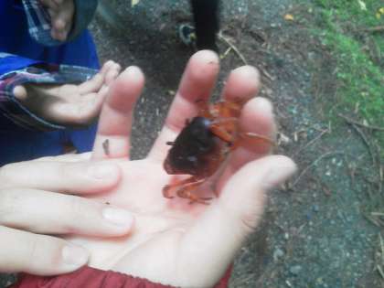 交流の森に着きました。澄んだ川の音に心いやされながら出発です。サワガニも応援してくれていました