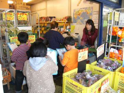 「どんなことが一番大変ですが」「何が一番売れますか」「うれしいことはどんなことですか」「こまったことはありますか」など,子どもたちがお店の人にインタビューしました。