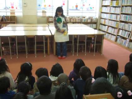 1月22日(金)に,PTA子どもと本の会主催の2年生「よんでよんで」がありました。内田莉沙子・再話/佐藤忠良・画 こどものとも傑作集絵本『ゆきむすめ』,いしばししずこ・作/石橋三宣・画 紙芝居『ふくはうち おにはうち』,チェン・ジャンホン・作・絵/平岡 敦・訳『ウェン王子とトラ』,エプロンシアター『さんびきのこぶた』の読み聞かせがありました。