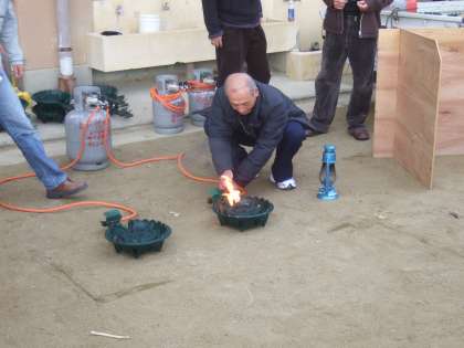 養徳社会福祉協議会長のお話の後,会長がコンロに点火しました。