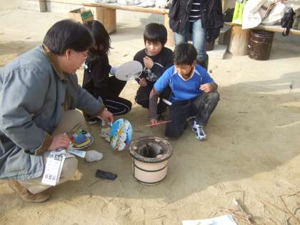 「火をおこすのはなかなか大変だった」「ガスコンロのように火を調節できないのでこげてしまった」「うちわで下からうまくあおいで空気を入れたら,いきおいよく火がついた」「大人の人は,うまく火をおこすこつを知っているなあ」などの意見が聞かれました。