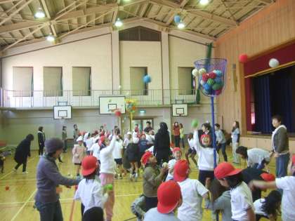 玉入れでは,最初子どもたちだけで,2回目は,子どもも保護者も一緒にしました。メディシンボールは,親子一緒にがんばりました。