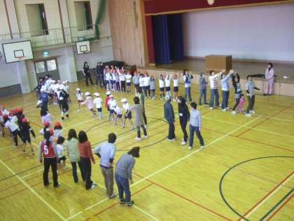 1月19日(火)5校時に,体育館で,2年生のPTA学年懇親会『ミニ運動会』を行いました。玉入れとメディシンボールを行いました。学級を赤・青・黄の3色に分けて,競いました。