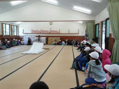 布団の敷き方・たたみ方をしっかり教えていただきました。毎朝起きたら自分の布団をたたみます。さぁみんなしっかりできるでしょうか。