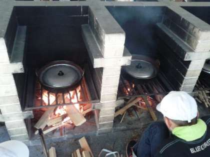 みんなで協力して仕込んだ鍋をかまどでしっかり煮込みました。美味しくなあれと気持ちを込めました。