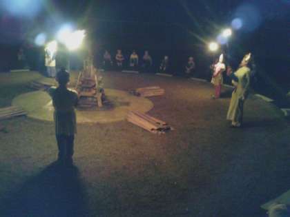 火の神から大切な火をいただき,燃え盛る炎を囲んでキャンプファイヤーを楽しみました。男女仲良くフォークダンスを踊り,仲間の絆を深めました。輝く星になれるよう明日からもみんな仲良くがんばります。
