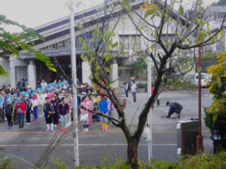 素敵な青空の下,三校合同で朝の集いです。5分前にはすでに並んでいて,時間を大切にする気持ちが感じられました。【5分前行動】