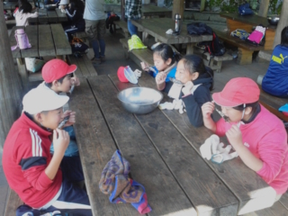 とっても香ばしく出来上がりました。頬張るとみんなにっこり。