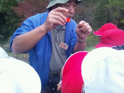 自然の形や触り心地,色がとても鮮やかで,山の家の先生のお話も面白く聞き入っています。