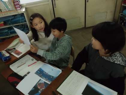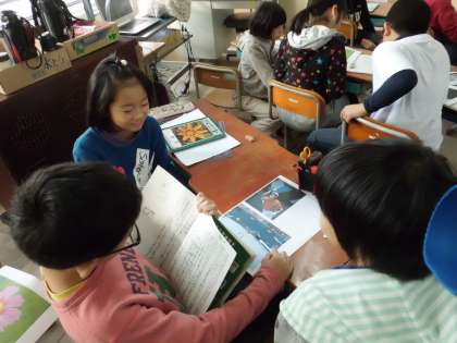 教科書に載っていないアップとルーズの写真を使って筆者になったつもりで説明文を書き,発表をしました。