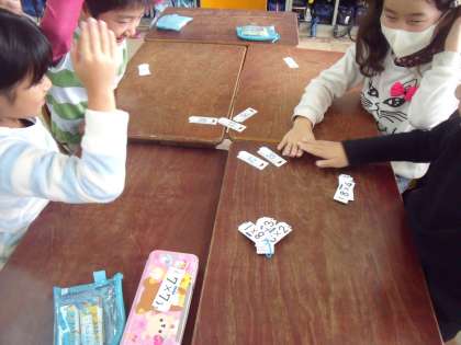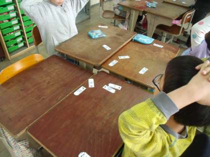 今日は「7のだん」と「8のだん」の九九カードを使ったカルタをしました。