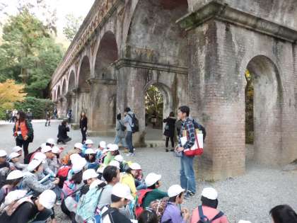 洋風なレンガ造りの水路閣に紅葉が色づき風情のある景色を楽しめました。
