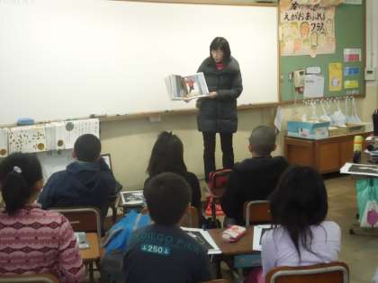 絵が版画で描かれていることもあり,初めて木版画に取り組んだ4年生は「版画でこんな細かい絵が描かれるなんてすごい。」とお話はもちろん絵も楽しんでいました。