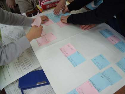 次に冬休み中に自分達が取り組めたことと,難しかったことを付箋に書いてグループで交流した後,頑張って取り組めた「おすすめ目標」か,難しかったことに取り組む「チャレンジ目標」を立て,学級でこれからも進んでエコに取り組めるように話し合いました。