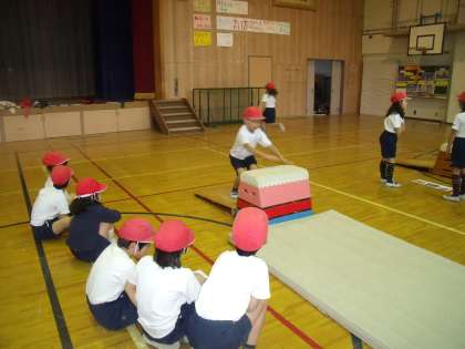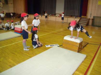 2年生では,友だちと動きを見合いながら,「とびばこ名人のコツ」を見つけました。