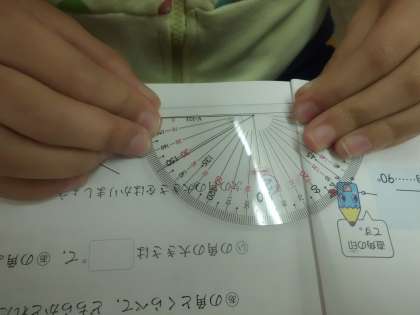 今日の算数の時間に初めて分度器を使いました。