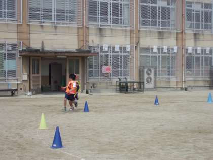 「バトンパス大切!!」と何度も繰り返し短い距離でバトン渡しの練習をしました。