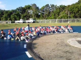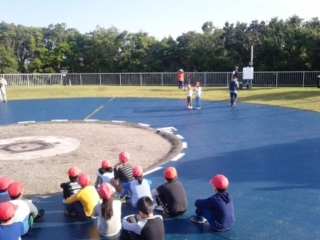 とても爽やかな朝日を浴びて,元気よく学校紹介をしました。