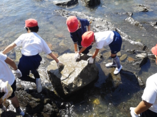 「うわぁ何これ?」「ヤドカリ捕まえた」「この貝きれい」